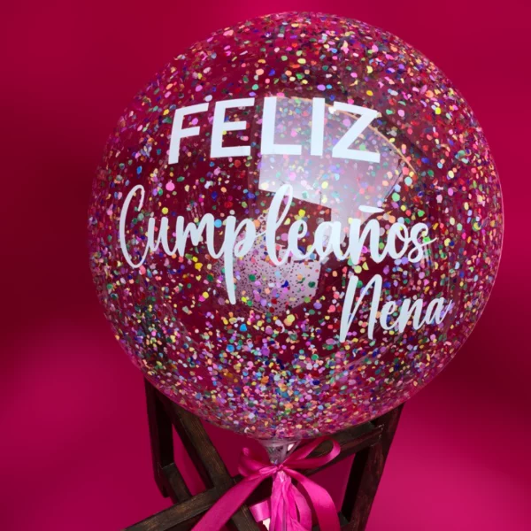 • Globo burbuja transparente de 22″ con confeti. (AIRE)